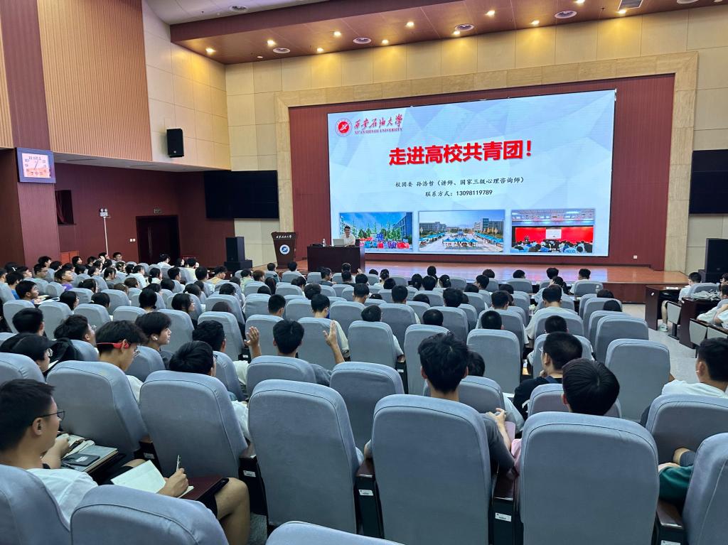 為深入貫徹落實(shí)共青團(tuán)中央關(guān)于加強(qiáng)團(tuán)的基層組織建設(shè)工作精神,使新生更好的了解共青團(tuán)的主要知識,增強(qiáng)入團(tuán)、入黨意識,9月14日晚,“學(xué)院新生入學(xué)教育之走進(jìn)高校共青團(tuán)”主題教育活動在鄠邑校區(qū)弘石學(xué)術(shù)報(bào)告廳舉行,活動邀請我校校團(tuán)委副書記孫浩哲擔(dān)任主講。孫浩哲首先從什么是共青團(tuán)、共青團(tuán)的光榮歷史、團(tuán)旗、團(tuán)徽、團(tuán)歌等幾個(gè)方面為全體新生詳細(xì)介紹了團(tuán)的基本知識,并從組織建設(shè)、校園文化、第二課堂、社會實(shí)踐、學(xué)生社團(tuán)以及學(xué)生會組織等方面將我校共青團(tuán)工作進(jìn)行詳細(xì)解讀。隨后,孫浩哲還對班級團(tuán)支部建設(shè)、智慧團(tuán)建、團(tuán)關(guān)系轉(zhuǎn)接、青年大學(xué)習(xí)、西安石油大學(xué)第二課堂學(xué)分管理辦法等重點(diǎn)工作進(jìn)行了交流研討。同時(shí),他通過介紹團(tuán)總支、班委的職能,強(qiáng)調(diào)了班團(tuán)一體化建設(shè)的必要性,并希望2023級新生能更加積極的提升自己的思想建設(shè),在中國共青團(tuán)的引領(lǐng)下努力向中國共產(chǎn)黨靠攏,為共產(chǎn)主義事業(yè)努力奮斗,將個(gè)人成長與祖國發(fā)展緊緊相連,在奮斗中綻放出最美麗的青春。