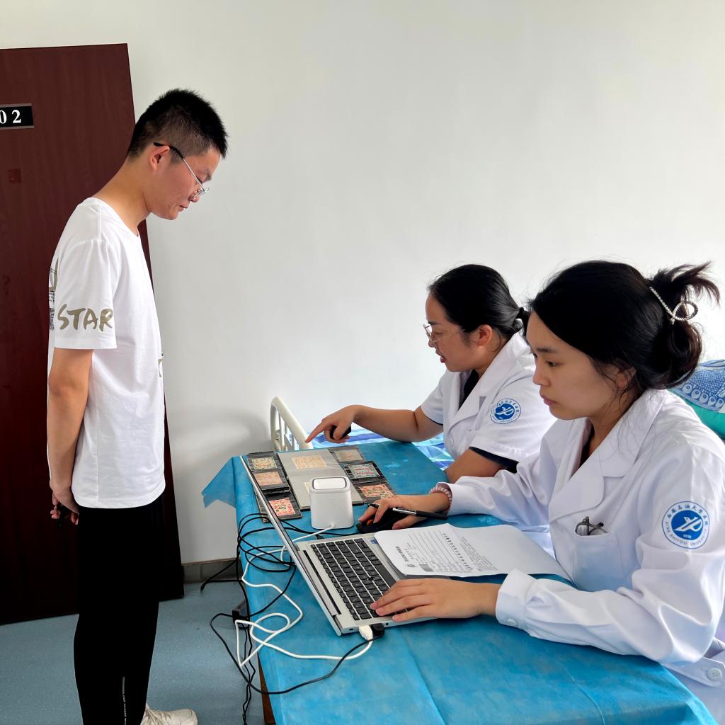 2023級新生體檢共設(shè)置了身高、體重、血壓、內(nèi)科、外科、視力、五官科、胸部X片、生化檢驗等九個工作小組。體檢現(xiàn)場,在醫(yī)務人員和學生志愿者的引導下,新生們按照院系和班級分批、錯峰有條不紊地進行體檢,醫(yī)務人員對每個學生進行了認真細致的檢查,對體檢結(jié)果進行詳細記錄,同時還針對性地給予學生相關(guān)保健建議和大學生醫(yī)保參保指導。