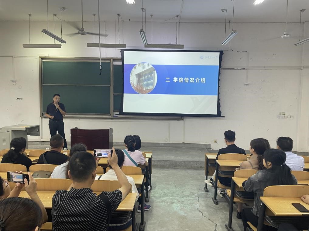 王業(yè)青介紹了學院學生工作基本情況,就學校學生日常教育管理制度、就業(yè)工作、考取碩士、社會實踐和文體活動等方面進行講解。幫助家長明晰學生大學四年學習任務、實踐目標,希望建立好家校聯(lián)動機制,共同培養(yǎng)德智體美勞全面發(fā)展的社會主義建設者和接班人。