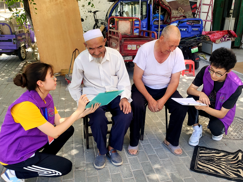 這樣的感悟同樣來自參加了社區(qū)服務(wù)工作后的其他隊(duì)員。7月5日,團(tuán)隊(duì)進(jìn)行了為期一天的社區(qū)服務(wù)活動(dòng),在紅廟子片區(qū)福地社區(qū)的整理文件、接聽電話、門崗值班等工作,讓隊(duì)員們對(duì)新疆發(fā)展的認(rèn)知又有新的理解。