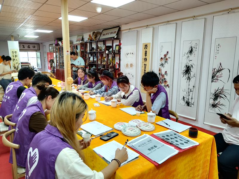 “一壺清茶伴一方字”,7月6日實(shí)踐團(tuán)前往新市區(qū)木材廠厚沙茶藝店,體驗(yàn)學(xué)習(xí)中華傳統(tǒng)文化中的茶和書法。