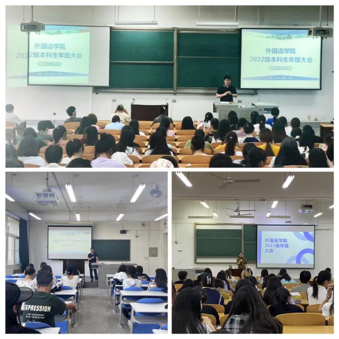 為落實好暑期工作,提高學生安全意識,根據(jù)學校暑假放假安排,近日,外國語學院在鄠邑校區(qū)A117、A239、B112分別召開暑假安全教育年級大會。