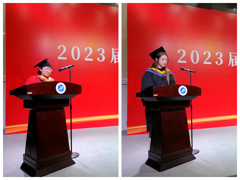 2023屆畢業(yè)生代表宋紫欣同學(xué)在發(fā)言中向多年來(lái)給予辛勤教誨的老師致以衷心的感謝和崇高的敬意,她回首四年求學(xué)時(shí)光的珍貴瞬間,從軍訓(xùn)、運(yùn)動(dòng)會(huì)、文藝晚會(huì)到大學(xué)四年種種成功的喜悅與失敗的迷茫,那些與老師們、同學(xué)們相處的點(diǎn)點(diǎn)滴滴將是溫暖未來(lái)歲月的寶貴財(cái)富。她表示,作為一名新時(shí)代的青年,將永遠(yuǎn)不忘母校的辛勤栽培,感恩母校的培育和老師的辛勤指導(dǎo),并代表全體畢業(yè)生向母校保證,將謹(jǐn)記師長(zhǎng)教誨,秉承“好學(xué)力行,自強(qiáng)不息”的校訓(xùn),為祖國(guó)富強(qiáng)和民族復(fù)興而不懈奮斗。