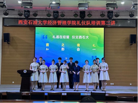 為打造學院學生文化活動“一院一品”精品項目,進一步提升禮儀隊專業(yè)素養(yǎng),6月13日,經(jīng)濟管理學院在鄠邑校區(qū)崇文樓就業(yè)指導中心多功能廳舉辦禮儀隊第二次業(yè)務培訓。本次培訓邀請外國語學院張帆老師擔任主講,禮儀隊全體成員參加了本次培訓。
