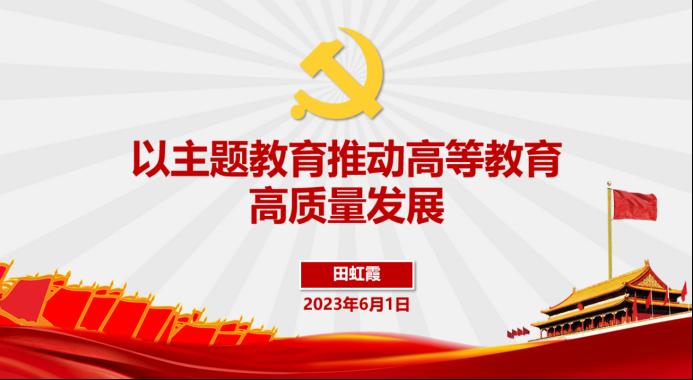 集中學習研討后,院黨委書記田虹霞做了題為“以主題教育推動高等教育高質量發(fā)展”的專題黨課。她從學習貫徹習近平新時代中國特色社會主義思想主題教育的意義與要求和高等教育事業(yè)高質量發(fā)展兩個方面,闡明了主題教育的重大意義、目標要求、全面落實重點舉措,并從將推動高質量發(fā)展作為檢驗主題教育成果這一根本要求出發(fā),講述了新時代高等教育改革創(chuàng)新發(fā)展方向和路徑。黨課結合具體數(shù)據(jù)對比分析了世界高等教育發(fā)展趨勢和我國高等教育發(fā)展現(xiàn)狀,回顧了改革開放特別是黨的十八大以來我國高等教育發(fā)展取得的成就,提出高等教育作為科技第一生產力、人才第一資源、創(chuàng)新第一動力的重要結合點,要在實現(xiàn)中國式現(xiàn)代化中發(fā)揮龍頭作用,要抓好根本質量、整體質量、服務質量、打造中國范式,建成高等教育強國。