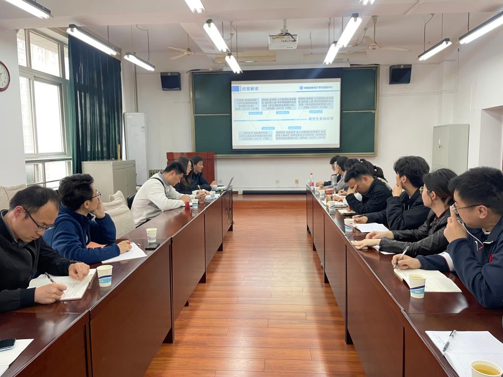培訓(xùn)會(huì)上,張恩祖詳細(xì)介紹了研究生國(guó)家獎(jiǎng)學(xué)金、學(xué)業(yè)獎(jiǎng)學(xué)金、國(guó)家助學(xué)金、“三助”津貼等國(guó)家和陜西省獎(jiǎng)助工作相關(guān)政策要求,對(duì)獎(jiǎng)勵(lì)對(duì)象、獎(jiǎng)勵(lì)標(biāo)準(zhǔn)、申請(qǐng)條件、資金來源、評(píng)審發(fā)放、材料要求等工作環(huán)節(jié)做了細(xì)致解讀。他強(qiáng)調(diào)學(xué)生獎(jiǎng)助工作是一項(xiàng)“保民生、暖民心”的系統(tǒng)工程,需要全體輔導(dǎo)員提高政治站位,永葆育人初心,以學(xué)生發(fā)展需求為中心,做到“保底線,促發(fā)展,助成長(zhǎng)”,推動(dòng)獎(jiǎng)助工作體系不斷創(chuàng)新。最后,張恩祖與輔導(dǎo)員們進(jìn)行了交流,對(duì)大家在研究生獎(jiǎng)助工作中遇到的問題做了詳細(xì)的解答。