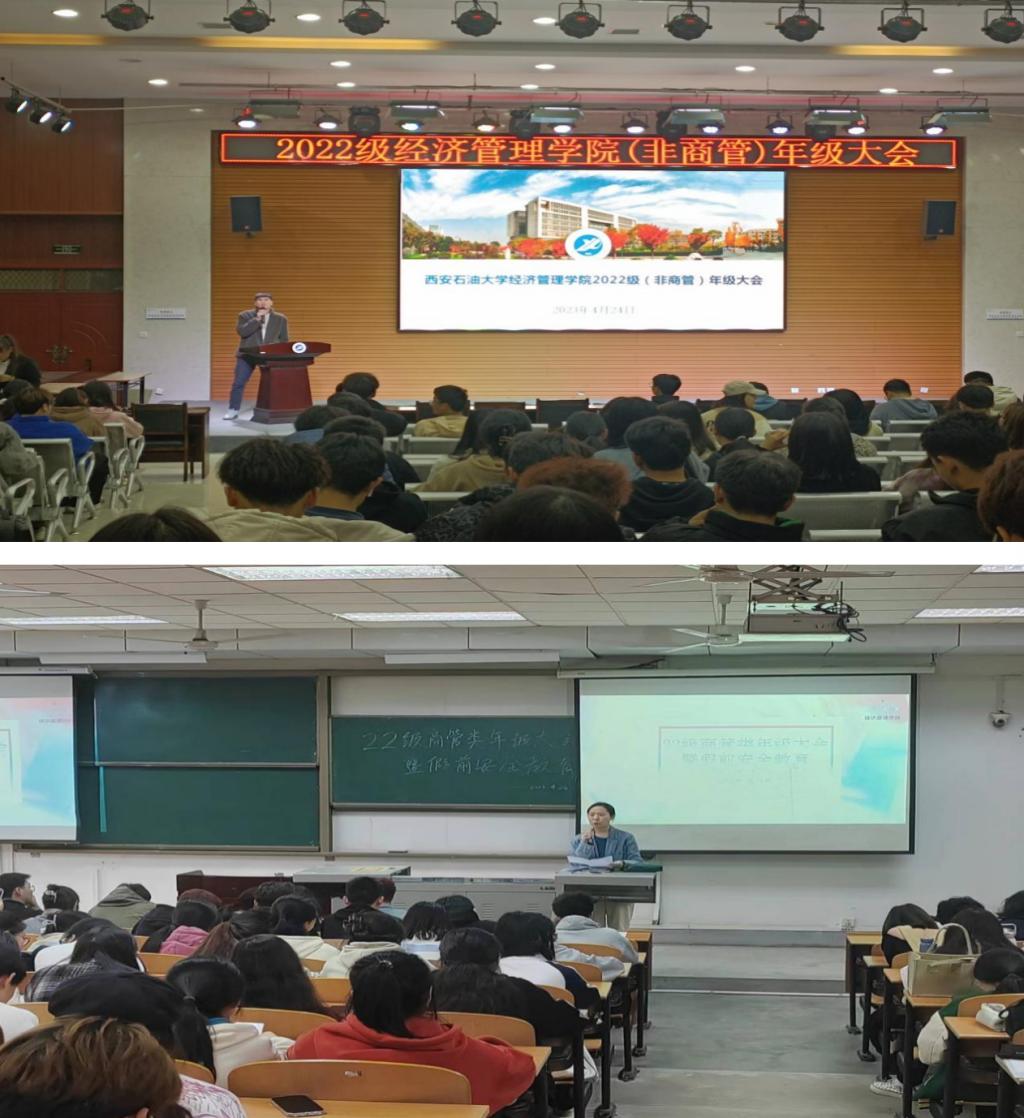 為切實(shí)做好假期學(xué)生安全教育管理工作,提升學(xué)生安全意識(shí),確保全體學(xué)生平安愉快地共度“五一”勞動(dòng)節(jié)。按照《關(guān)于做好2023年“五一”國(guó)際勞動(dòng)節(jié)假期有關(guān)學(xué)生教育管理工作的通知》(學(xué)工函〔2023〕9號(hào))的要求,4月24—26日,經(jīng)濟(jì)管理學(xué)院各年級(jí)輔導(dǎo)員以線上、線下相結(jié)合的方式,有序召開(kāi)“五一”假期安全教育大會(huì),通過(guò)多種渠道開(kāi)展教育工作,使學(xué)生在思想上重視安全、行為上落實(shí)安全,讓假期安全教育切實(shí)入腦入心。