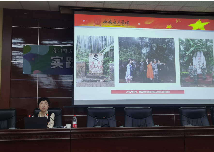 張教授以師生在文藝演出慰問過程中發(fā)生的感人故事入題,講述了她們從2018年開始利用假期組織師生代表組成慰問實踐團先后赴祖國邊防內蒙古阿爾山、黑龍江漠河、新疆北山、云南老山等地開展“實踐教學到基層 藝術服務走邊防”實踐慰問活動,向為國戍邊的官兵送去文藝演出的親身經歷。分別從“重走總書記視察之路、站在哨所上傾情獻藝、參觀學習當?shù)丶o念館、與邊防戰(zhàn)士聯(lián)手表演”四個方面通過一個個感人的故事,一幅幅生動形象的圖片讓在場聽眾感受到我們祖國的邊防衛(wèi)士在極其惡劣、艱苦的環(huán)境中表現(xiàn)出的保家衛(wèi)國、無私奉獻的高尚精神。張教授還飽含深情的為大家朗誦了一封《參戰(zhàn)烈士的家信》,在場聽眾都熱淚盈眶。