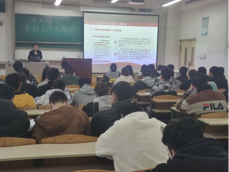 胡娟解讀了黨的二十大的會(huì)議主題和主要成果,同大家一道回顧了過(guò)去5年黨和國(guó)家的主要工作以及新時(shí)代10年的偉大變革。隨后闡述了馬克思主義中國(guó)化時(shí)代化和中國(guó)式現(xiàn)代化的深刻內(nèi)涵,以及黨和國(guó)家關(guān)于實(shí)現(xiàn)全面建設(shè)社會(huì)主義現(xiàn)代化國(guó)家未來(lái)五年的戰(zhàn)略部署。同時(shí),她強(qiáng)調(diào)全面建設(shè)社會(huì)主義現(xiàn)代化國(guó)家、全面推進(jìn)中華民族偉大復(fù)興,關(guān)鍵還在中國(guó)共產(chǎn)黨,必須持之以恒推進(jìn)全面從嚴(yán)治黨。最后,胡娟向同學(xué)們發(fā)起倡議:“我們要認(rèn)真學(xué)習(xí)領(lǐng)會(huì)黨的二十大精神,緊密團(tuán)結(jié)在以習(xí)近平同志為核心的黨中央周圍,高舉中國(guó)特色社會(huì)主義偉大旗幟,全面貫徹習(xí)近平新時(shí)代中國(guó)特色社會(huì)主義思想,牢記空談?wù)`國(guó)、實(shí)干興邦,堅(jiān)定信心、同心同德,埋頭骨干、奮勇前進(jìn),為全面建設(shè)社會(huì)主義現(xiàn)代化國(guó)家、全面推進(jìn)中華民族偉大復(fù)興而團(tuán)結(jié)奮斗!”