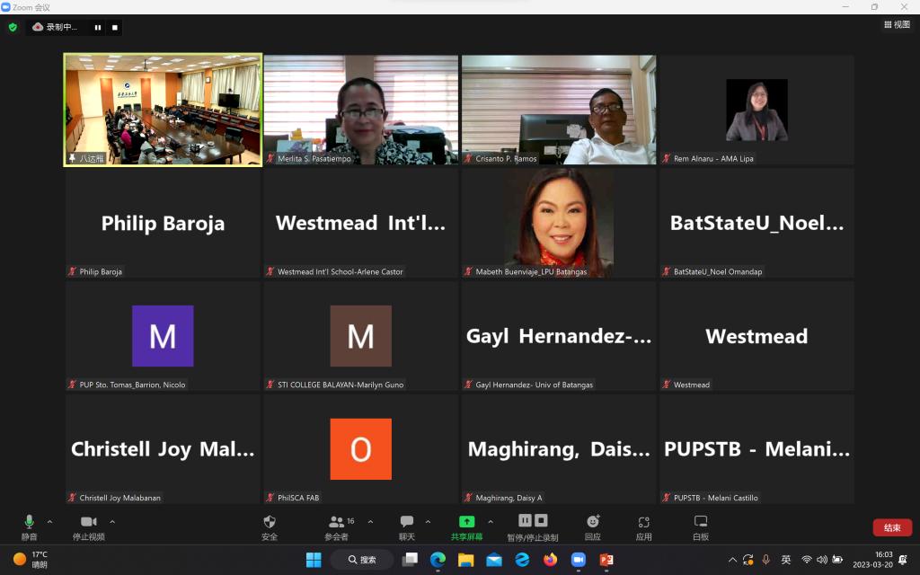 會上,與會代表就菲方學生來華留學、教師互訪、學生交流等內(nèi)容進行了深入溝通。通過本次線上+線下座談,高效鏈接了我校與菲律賓政府部門、高等學校間的聯(lián)絡,進一步擴大了我校與菲律賓高校合作,為我校拓展與菲律賓教育合作搭建了橋梁,奠定了合作基礎。