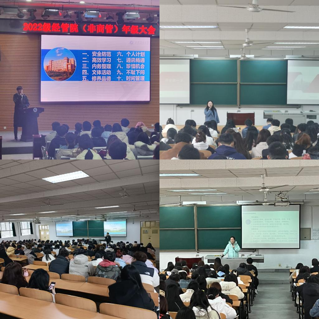 二是統(tǒng)一思想明方向,同心協(xié)力樹(shù)新風(fēng)。為更好地推進(jìn)新學(xué)期學(xué)生教育管理工作落到實(shí)處,及時(shí)了解學(xué)生思想動(dòng)態(tài),經(jīng)濟(jì)管理學(xué)院于開(kāi)學(xué)第一周召開(kāi)學(xué)生年級(jí)大會(huì),會(huì)議由各年級(jí)輔導(dǎo)員主持,會(huì)議內(nèi)容包括日常管理、誠(chéng)信教育、學(xué)風(fēng)建設(shè)、生涯規(guī)劃等方面,督促學(xué)生遵守日常管理要求,及時(shí)調(diào)整學(xué)習(xí)狀態(tài),合理制定復(fù)習(xí)方案,誠(chéng)信從容參加考試,展現(xiàn)經(jīng)管學(xué)子學(xué)風(fēng)嚴(yán)謹(jǐn)、學(xué)業(yè)扎實(shí)、態(tài)度認(rèn)真的良好風(fēng)貌。