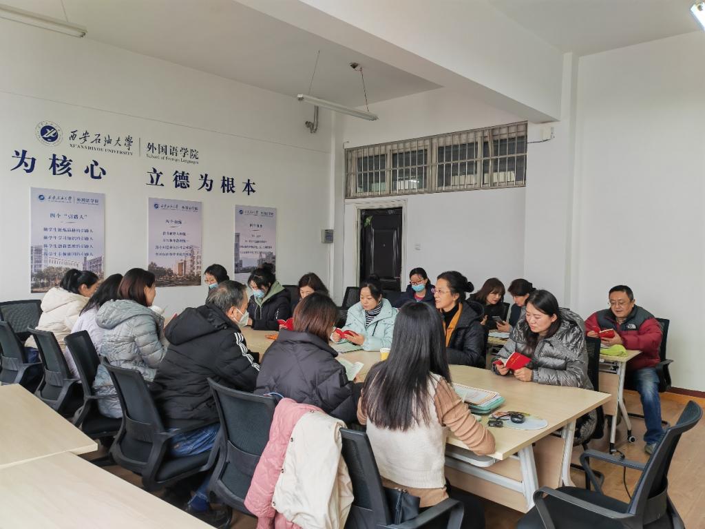2月22日下午2:00,外國語學(xué)院大學(xué)外語第一教學(xué)部黨支部在雁塔校區(qū)華油能源樓706室召開師德師風(fēng)法規(guī)專題學(xué)習(xí)會議,會議由黨支部書記付俊芳主持,大學(xué)外語第一教學(xué)部全體黨員教師參加會議。
