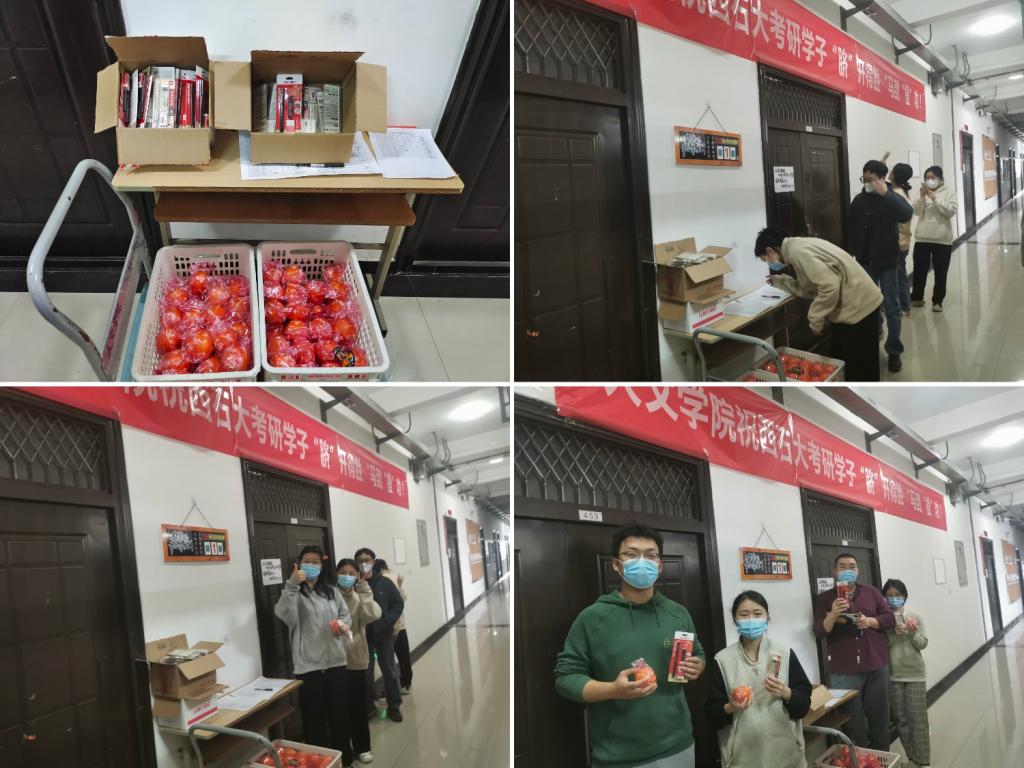 慰問保障,保供生活無憂。今年暑假及12月13日,學(xué)院多次開展考研學(xué)生慰問,為學(xué)生送去慰問水果、文具等物品,了解復(fù)習(xí)進度,聽取學(xué)生建議。同時,為了保證設(shè)計學(xué)生考試畫材順利送到學(xué)生手中,學(xué)院多次調(diào)查學(xué)生困難,聯(lián)系因疫情無法配送的快遞,最終保證考試順利。