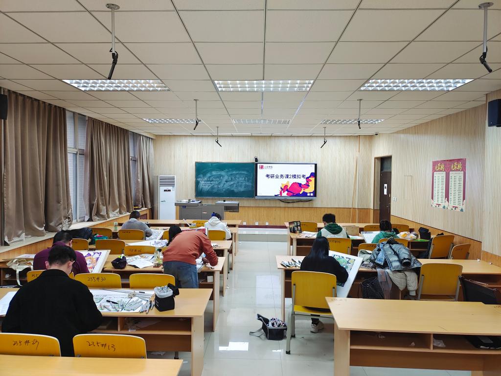 沙場練兵,磨煉實戰(zhàn)技能。為幫助學(xué)生熟悉考試流程,提高繪畫考試技巧,11月29日下午2點,學(xué)院組織考研學(xué)生在人文經(jīng)管樓235教室開展時長3小時的業(yè)務(wù)課2模擬考試。考試中,學(xué)生合理規(guī)劃時間、優(yōu)化設(shè)計思路,呈現(xiàn)出多樣的作品??荚嚭螅瑢W(xué)院組織專業(yè)老師進行點評指導(dǎo),幫助學(xué)生查漏補缺,完善作品。