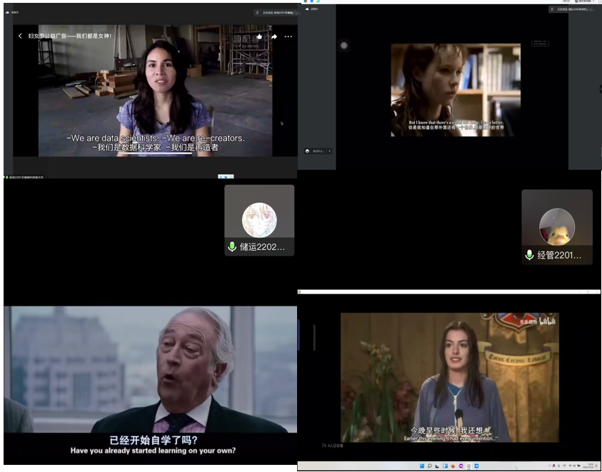 大賽以英語(yǔ)電影為載體,進(jìn)行了五分鐘內(nèi)的英語(yǔ)電影選段配音。通過(guò)為期2個(gè)月的初賽選拔,經(jīng)大學(xué)英語(yǔ)教師推薦、初評(píng),最終14位同學(xué)脫穎而出進(jìn)入決賽?!芭_(tái)上三分鐘,臺(tái)下十年功。“ 同學(xué)們對(duì)自己的作品反復(fù)打磨,精益求精,充分體現(xiàn)作品內(nèi)涵,模仿語(yǔ)音語(yǔ)調(diào),克服了當(dāng)前疫情的影響,多次彩排適應(yīng)了線上比賽的節(jié)奏,給大家呈現(xiàn)了一場(chǎng)聽覺盛宴。同學(xué)們氣定神閑、語(yǔ)音純正,一個(gè)個(gè)精彩的演繹把現(xiàn)場(chǎng)師生們帶入不同的場(chǎng)景里,“聲”臨其境體驗(yàn)英語(yǔ)口語(yǔ)魅力。最終,張莎悅同學(xué)獲得一等獎(jiǎng),戴傳裕和耿瑜璐同學(xué)獲得二等獎(jiǎng),楊盛凱、林資忻等11位同學(xué)獲得三等獎(jiǎng)和優(yōu)秀獎(jiǎng)。