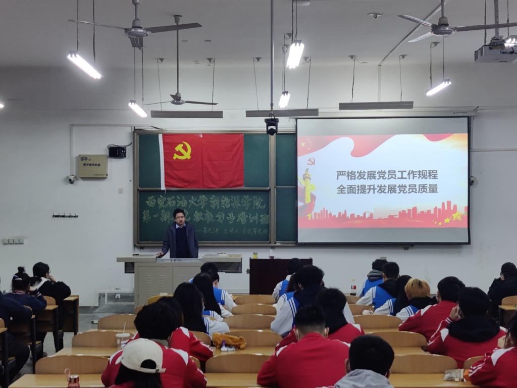為進(jìn)一步做好發(fā)展黨員工作,提高黨員發(fā)展質(zhì)量,不斷提升入黨積極分子的思想覺(jué)悟和理論水平,充實(shí)黨員隊(duì)伍后備力量,11月中下旬,新能源學(xué)院第一期入黨積極分子培訓(xùn)班在鄠邑校區(qū)進(jìn)行,學(xué)院本科生中已確定的積極分子共計(jì)61人參加了本次培訓(xùn)。