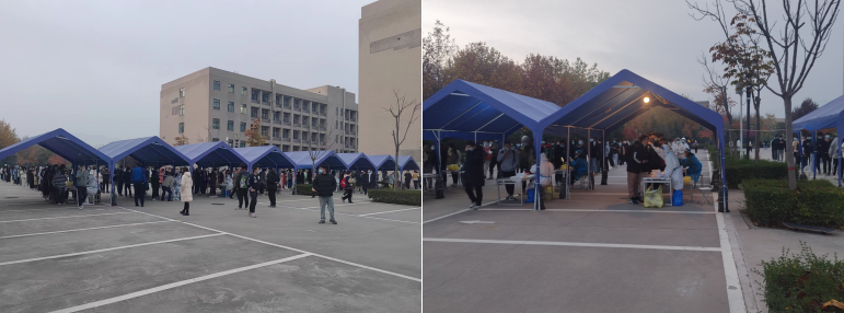 針對鄠邑校區(qū)學(xué)生宿舍樓分布情況,學(xué)生工作部(處)、鄠邑校區(qū)管理辦公積極響應(yīng)學(xué)生訴求,聽取各方意見,組織實(shí)地調(diào)研,開展評估論證和研討,在原有西區(qū)核酸檢測點(diǎn)的基礎(chǔ)上新增“東區(qū)核酸檢測點(diǎn)”,場地設(shè)立在開物樓東側(cè)停車場(原迎新點(diǎn))。同時(shí),調(diào)整學(xué)生組織方式,不斷優(yōu)化師生員工核酸檢測體驗(yàn)感,提升學(xué)生滿意度,尋求“最優(yōu)解”。