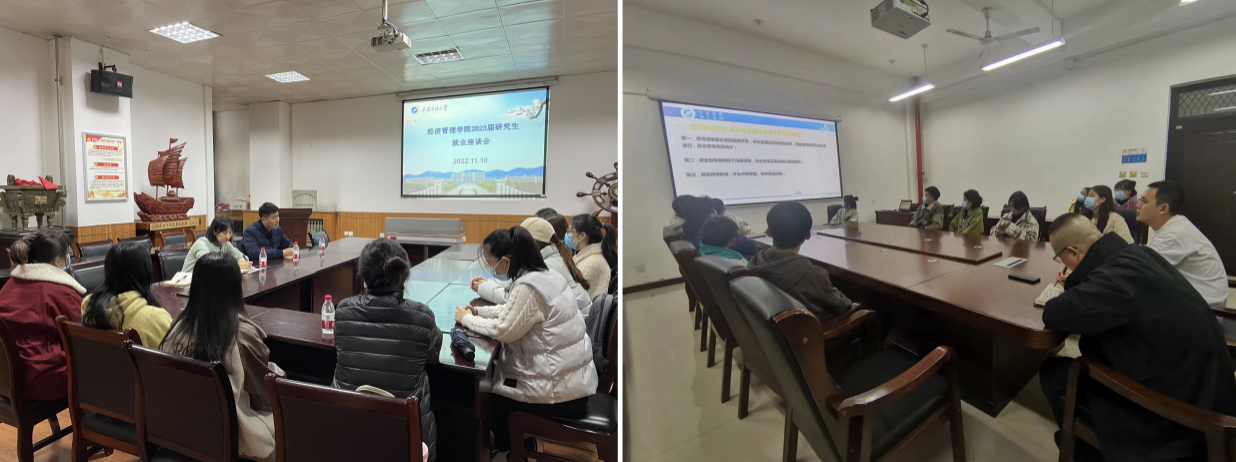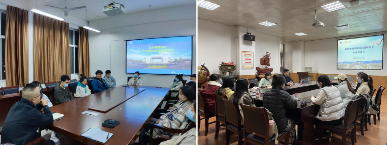 為進(jìn)一步了解學(xué)院2023屆畢業(yè)生就業(yè)情況,掌握學(xué)生求職動(dòng)態(tài),解決學(xué)生求職中的困難,11月10日,經(jīng)濟(jì)管理學(xué)院召開2023屆畢業(yè)生就業(yè)座談會(huì)。學(xué)院黨委副書記王剛,學(xué)生工作辦公室主任李博文,2023屆學(xué)生輔導(dǎo)員陸曉寒、王中立,畢業(yè)班學(xué)生代表共50余人參加會(huì)議。