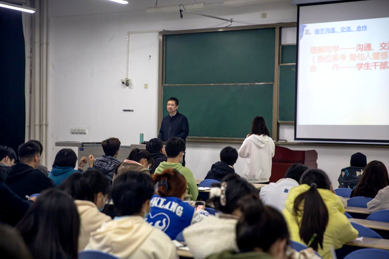 本次大會(huì)上,龐遠(yuǎn)以《高校學(xué)生干部的定位和素質(zhì)》為題,從高校學(xué)生干部的政治鑒別能力、思想引領(lǐng)能力、學(xué)業(yè)示范能力、自我反省能力、主動(dòng)學(xué)習(xí)能力、管理協(xié)調(diào)能力等六個(gè)方面為同學(xué)們進(jìn)行了一場(chǎng)專(zhuān)題培訓(xùn)。培訓(xùn)中,龐遠(yuǎn)結(jié)合個(gè)人經(jīng)歷和工作經(jīng)驗(yàn),圍繞“學(xué)生干部的重要作用”講明了學(xué)生干部在班級(jí)建設(shè)中的重要作用,通過(guò)“正確的地位觀(guān)、樹(shù)立威信、善于溝通合作、主動(dòng)作為、提高執(zhí)行力、兼顧工作與學(xué)習(xí)”闡述了“如何提高高校學(xué)生干部素質(zhì)”這個(gè)主題。同時(shí),在培訓(xùn)中,他向同學(xué)們分析了學(xué)校目前疫情防控工作中面臨的風(fēng)險(xiǎn)和挑戰(zhàn),講解了學(xué)校的疫情防控政策及應(yīng)對(duì)措施。最后龐遠(yuǎn)提出了對(duì)與會(huì)學(xué)生干部的工作期望,希望同學(xué)們?cè)谝院蟮墓ぷ髦心軌蛘J(rèn)真、嚴(yán)謹(jǐn),提高做事效率,培養(yǎng)時(shí)間意識(shí)和責(zé)任意識(shí),嚴(yán)格遵守紀(jì)律,起到模范帶頭作用。