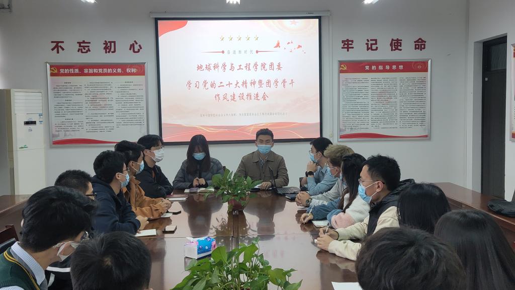 11月3日下午,地球科學(xué)與工程學(xué)院團委在開物樓507會議室召開學(xué)習(xí)黨的二十大精神暨團學(xué)骨干作風(fēng)建設(shè)推進會。學(xué)生會指導(dǎo)老師李佩琦、2019級團總支書記劉學(xué)斌、2022級團總支書記姜英哲、全體團學(xué)骨干、各班團支部書記代表參加會議,會議由2021級團總支書記劉宇航主持。