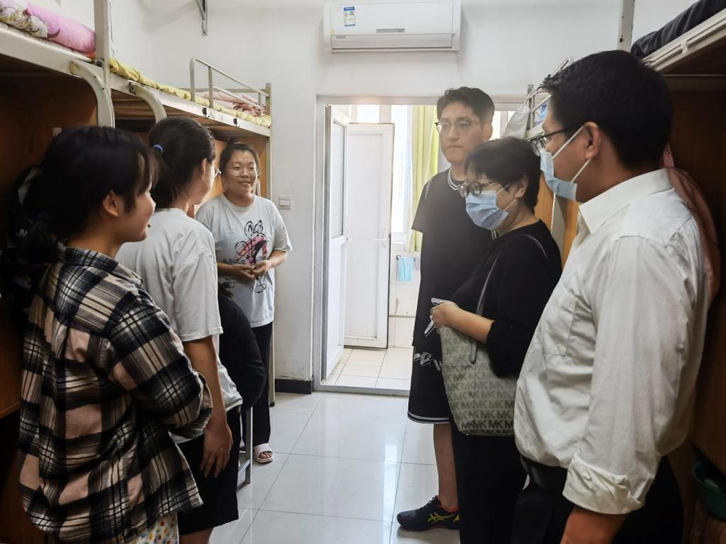 9月29日,學院院長于艷英、黨委副書記王業(yè)青、學工辦主任周宇通過走訪宿舍,深入了解學生的學習、思想、安全等方面情況,并查看他們的線上學習情況。于艷英院長、王業(yè)青副書記叮囑大家充分利用假期時間規(guī)劃好學業(yè),如需外出嚴格履行請假手續(xù),校外期間做好個人防護和各項安全措施。