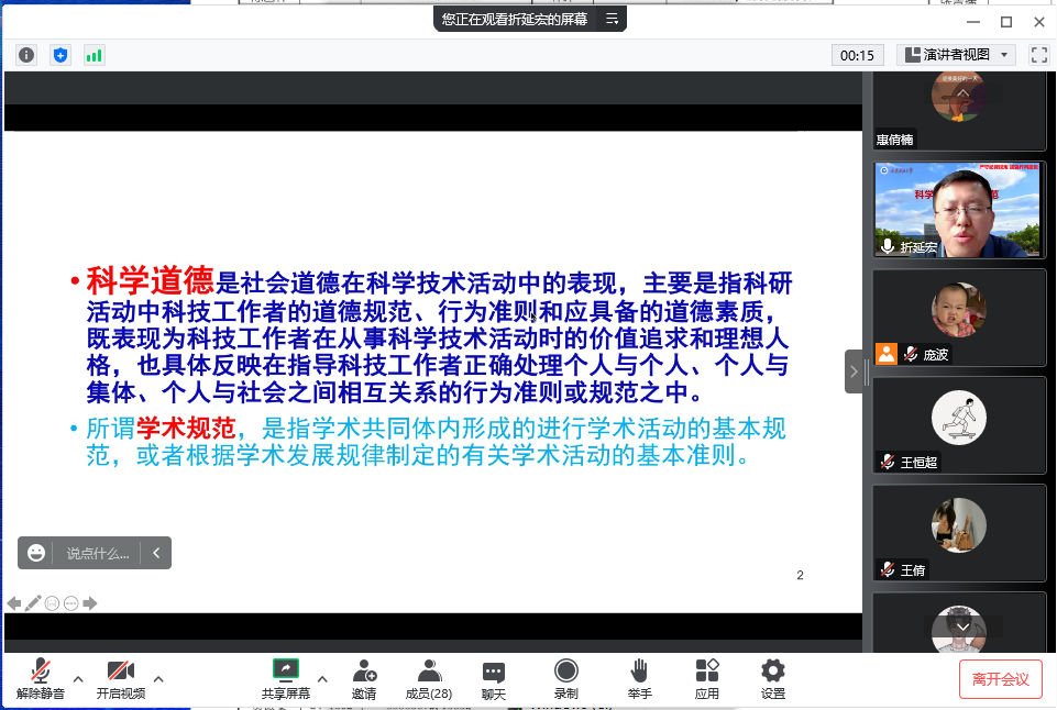 9月25日、27日理學院黨委副書記馬小剛、副院長折延宏先后給全體本科生和研究生黨員作了專題學習教育。25日,馬小剛給全體本科生黨員作了《中國共產(chǎn)黨紀律處分條例》專題學習輔導,帶領全體本科生黨員學習了“對違反政治紀律行為的處分”相關章節(jié);27日,折延宏給全體研究生黨員作了《嚴守紀律規(guī)矩,加強作風建設——研究生科學道德與學術規(guī)范》的專題講座。教育引導學生黨員將個人理想追求融入到國家和民族的事業(yè)中,為黨、為祖國、為人民多作貢獻。