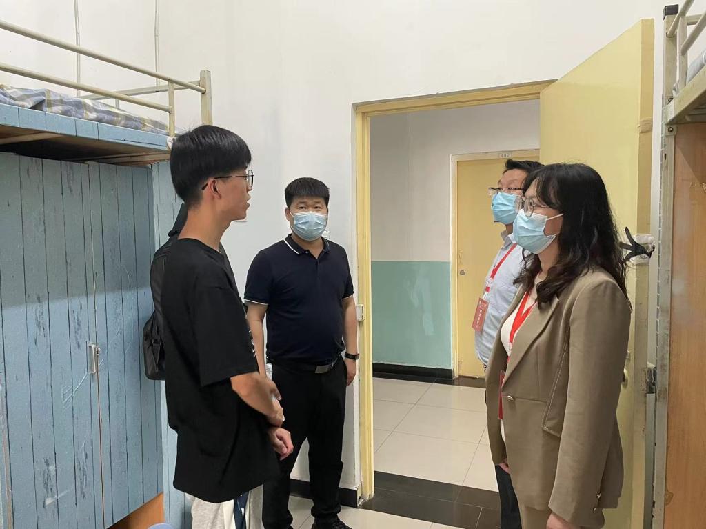 走訪過程中,田虹霞書記、王業(yè)青副書記分別與同學(xué)們進(jìn)行親切交談。從住宿飲食、生活習(xí)慣、發(fā)展規(guī)劃等多方面深入了解新生情況。詳細(xì)詢問大家家鄉(xiāng)籍貫、入學(xué)報到是否順利、在校期間遇到的困難等。叮囑同學(xué)們要嚴(yán)格落實學(xué)校的各項疫情防控規(guī)定,盡快調(diào)整好學(xué)習(xí)生活節(jié)奏,完成身份、角色轉(zhuǎn)變,以積極良好的狀態(tài)迎接大學(xué)學(xué)習(xí)生活。他們提醒同學(xué)們要注意宿舍安全,增強自我管理意識。希望同學(xué)們養(yǎng)成良好生活習(xí)慣,珍惜學(xué)習(xí)時間,提前做好大學(xué)期間的學(xué)習(xí)規(guī)劃,錨定目標(biāo),腳踏實地,為將來的發(fā)展打下扎實的基礎(chǔ)。