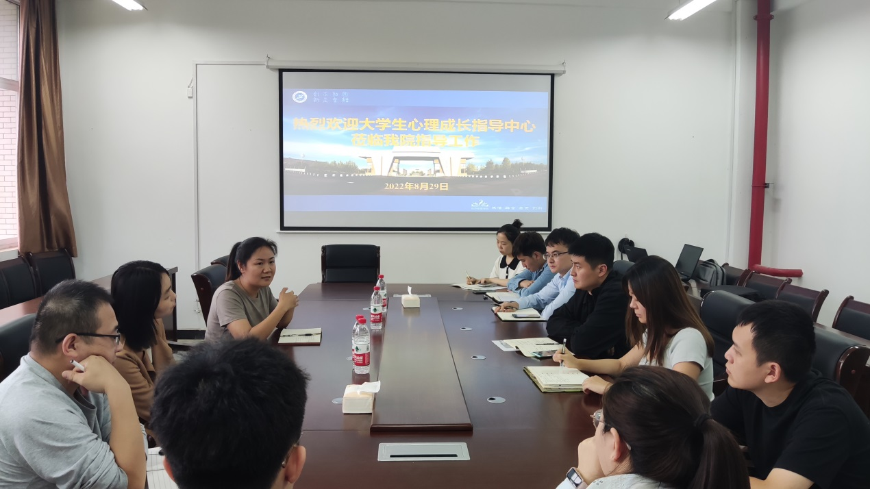 8月29日,學(xué)生心理成長(zhǎng)指導(dǎo)中心辦公室主任焦文潔,專(zhuān)職教師趙晶、閆高斌一行3人,到經(jīng)濟(jì)管理學(xué)院開(kāi)展心理健康教育工作交流座談,座談會(huì)在鄠邑校區(qū)崇文樓305會(huì)議室舉行,經(jīng)濟(jì)管理學(xué)院學(xué)生工作辦公室全體輔導(dǎo)員參加本次活動(dòng)。