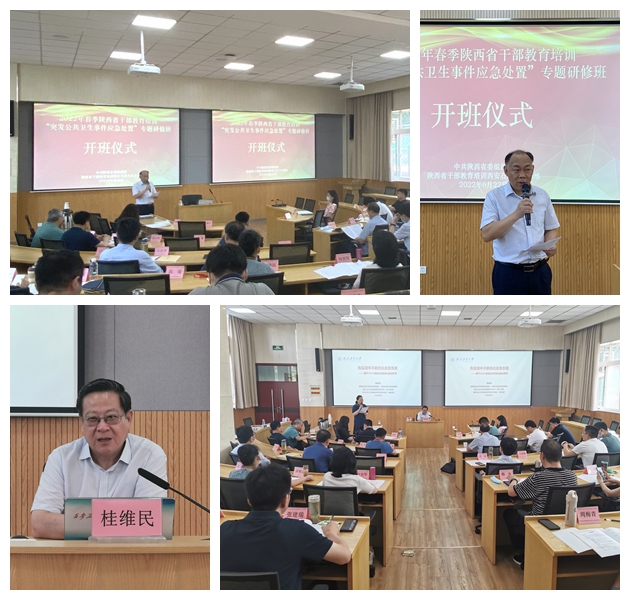 6月22日上午,由省委組織部主辦、我校干部教育培訓(xùn)基地承辦的2022年春季陜西省干部教育培訓(xùn)“突發(fā)公共衛(wèi)生事件應(yīng)急處置”專題研修班,在我校明德校區(qū)順利開班。繼續(xù)教育學(xué)院副院長吳民生出席開班儀式并致辭,來自省直機關(guān)、地市政府的50名領(lǐng)導(dǎo)干部參加了開班儀式,儀式由班主任蘇楊主持。