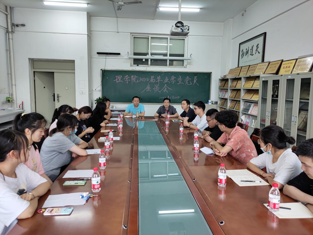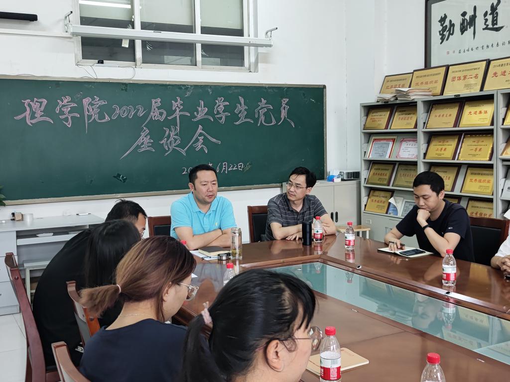 6月22日下午,理學院在鄠邑校區(qū)志遠樓111會議室召開2022屆本科畢業(yè)生黨員代表座談會。理學院黨委副書記馬小剛主持,學工辦主任、2022屆本科畢業(yè)生輔導員丁亦喆,任課教師代表馮德全,2022屆16名本科畢業(yè)生黨員代表參會。