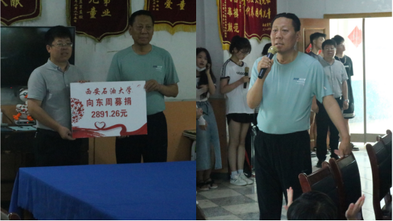 到達兒童村,機械工程學院的師生受到了孩子們的熱烈歡迎,團委書記文愛國老師代表學院將前期一周募捐的善款悉數(shù)贈予兒童村,并對此次主題實踐活動做了講話,他表示:一是西安石油大學機械工程學院自1997年以來二十六年不間斷赴兒童村開展愛心公益活動,廣大青年大學生們在學中做、在做中學,努力把自己培養(yǎng)成德智體美勞全面發(fā)展的社會主義合格建設(shè)者和可靠接班人。二是希望黨員、入黨積極分子同學們傳承好二十六年機械學子公益活動的初心,敢于擔當,勇于作為,跑好“大手拉小手,愛心暖東周”的接力賽。三是希望兒童村的孩子們能樂觀積極生活,健康成長,努力成才,樹立遠大理想信念,珍惜學習機會,養(yǎng)成良好品行早日成為社會有用之才。
