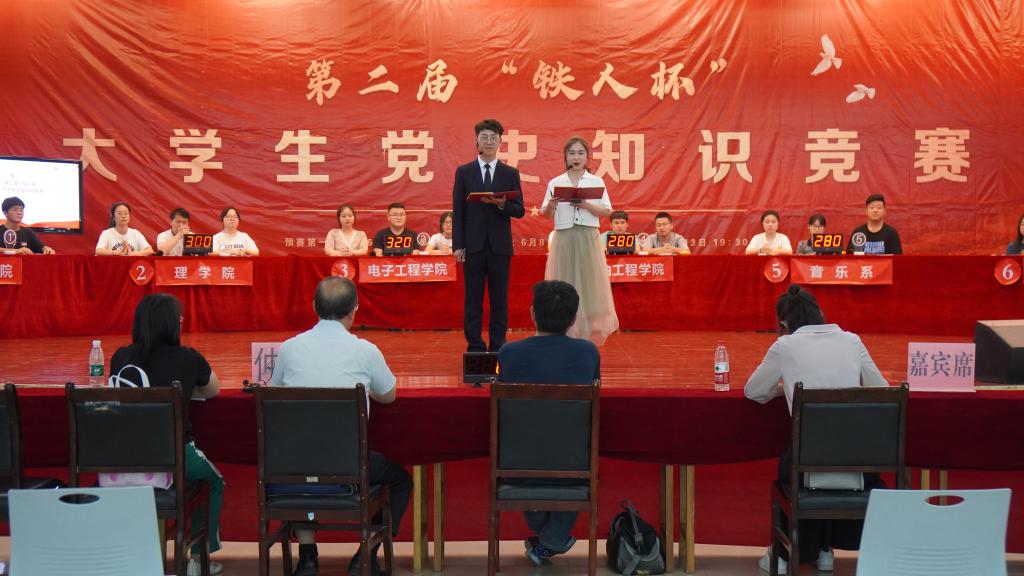 為全面貫徹落實黨的十九屆六中全會精神,緊緊圍繞愛黨愛國愛社會主義主題,講好中國共產(chǎn)黨為中國人民謀幸福、為中華民族謀復(fù)興的故事,營造豐富多彩、積極向上的校園文化氛圍。6月6日晚,我校在鄠邑校區(qū)騰輝大學(xué)生活動中心舉行第二屆“鐵人杯”大學(xué)生黨史知識競賽開幕式暨第一場預(yù)賽。