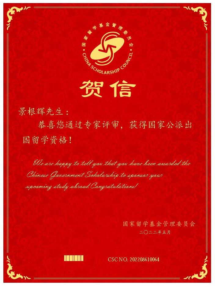 近日,國(guó)家留學(xué)基金委發(fā)布了2022年國(guó)家建設(shè)高水平大學(xué)公派研究生項(xiàng)目錄取結(jié)果,我?;瘜W(xué)化工學(xué)院碩士研究生景根輝同學(xué)經(jīng)過(guò)嚴(yán)格審核評(píng)選,獲得國(guó)家公派攻讀Virginia Commonwealth University(弗吉尼亞聯(lián)邦大學(xué))博士學(xué)位資格,資助期限為48個(gè)月,每月資助1900美元(約合人民幣13000元)生活費(fèi),弗吉尼亞聯(lián)邦大學(xué)提供全額學(xué)費(fèi)資助。