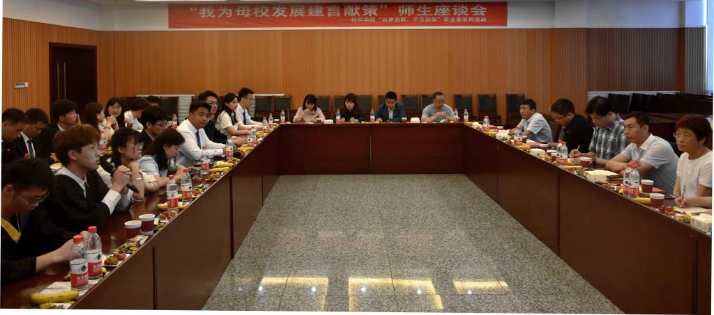 5月19日上午,材料科學與工程學院“我為母校發(fā)展建言獻策”師生座談會在鄠邑校區(qū)圖書館第一會議室舉行。學院黨委副書記張云姿、副院長朱世東以及各系、中心、教學辦教師代表,全體輔導員老師參加座談會,并與畢業(yè)生代表進行了深入交流,傾聽同學們?yōu)閷W校和學院的發(fā)展建設提出的寶貴意見和建議,與即將離校的畢業(yè)生們一起共話學校發(fā)展。座談會由學生工作辦公室主任馬武軍主持。