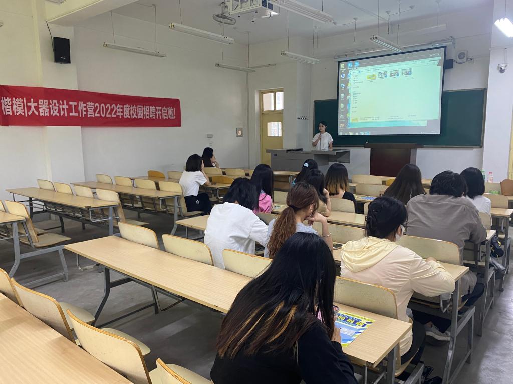 5月18日,應(yīng)人文學(xué)院邀請,大器設(shè)計工作營來我校舉行專場招聘會。人文學(xué)院2018級輔導(dǎo)員范嘉欣老師及多名有就業(yè)需求的大四學(xué)生參加宣講。