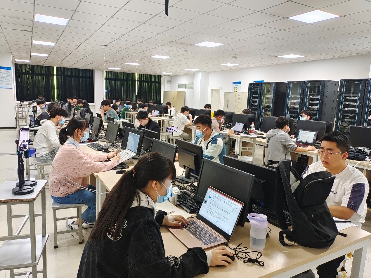 第十三屆藍(lán)橋杯是我校參賽人數(shù)最多、規(guī)模最大的一屆,也是獲獎(jiǎng)人數(shù)最多、成績最突出的一屆。多年以來,計(jì)算機(jī)學(xué)院一直高度重視該項(xiàng)賽事,積極鼓勵(lì)和支持學(xué)生參加大賽,全力做好各項(xiàng)組織和保障工作。同時(shí),學(xué)院投入大量資金用于購買相關(guān)課程,制定培訓(xùn)方案,利用周末和晚上錯(cuò)峰進(jìn)行環(huán)境模擬培訓(xùn)。比賽當(dāng)天,按照疫情管控要求,所有學(xué)生佩戴口罩、攜帶證件、雙碼核查、體溫合格后有序進(jìn)場??荚嚻陂g,學(xué)院設(shè)立巡考團(tuán)隊(duì),全程參與各環(huán)節(jié)的考務(wù)工作,為參賽選手提供幫助與服務(wù)。本屆藍(lán)橋杯實(shí)現(xiàn)了我院學(xué)子在編程競賽賽事上的突破,大大激發(fā)了學(xué)生對(duì)于編程的熱情。計(jì)算機(jī)學(xué)院將一如既往地踐行“以賽促教、以賽促學(xué)、以賽促發(fā)展”的教學(xué)理念,大力支持全院師生參加各類學(xué)科學(xué)生競賽。
