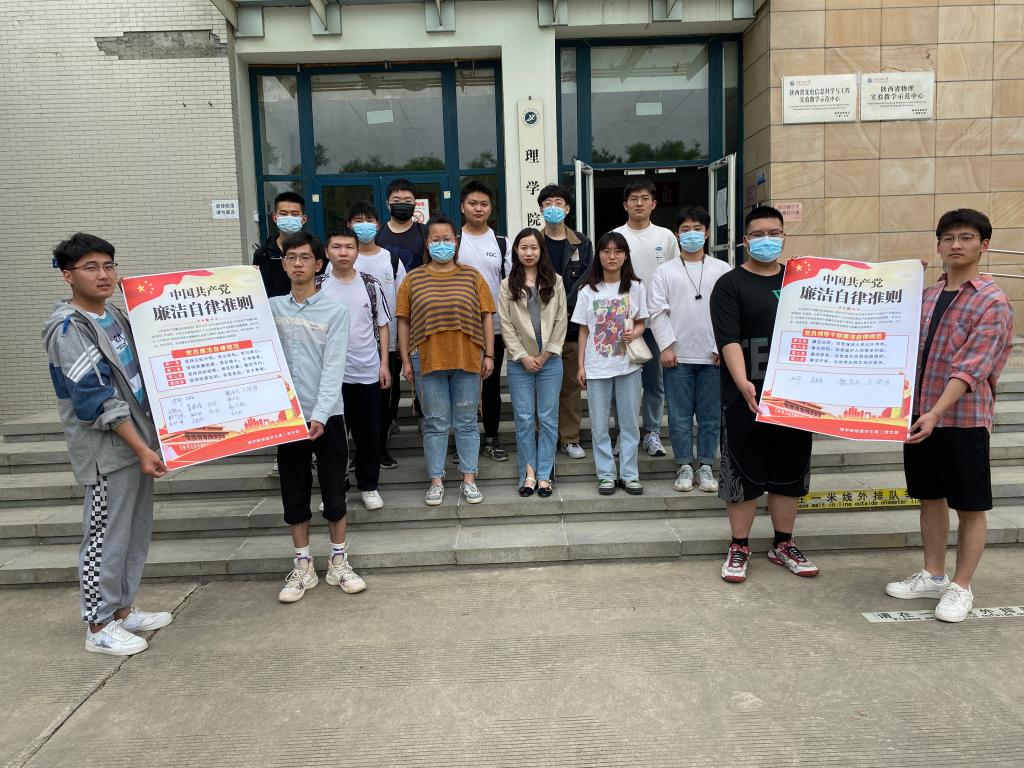 七個(gè)學(xué)生黨支部開展了富有特色的主題黨日活動(dòng)。觀看了“學(xué)習(xí)強(qiáng)國(guó)”和“秦風(fēng)網(wǎng)”相關(guān)主題視頻短片,內(nèi)容包括《<中國(guó)共產(chǎn)黨廉潔自律準(zhǔn)則>解讀第一集:公與私》、《焦裕祿(一)臨危授命》、警示教育紀(jì)錄片《背離初心的國(guó)企蛀蟲》等等。各學(xué)生黨支部通過學(xué)深悟透廉潔自律準(zhǔn)則要求,以正面典型為“鏡”開展示范教育,以反面典型為“戒”開展警示教育等方式,對(duì)標(biāo)先進(jìn)事跡反思反省找差距,對(duì)照反面案例清掃內(nèi)心污垢、自警自省,夯實(shí)清正廉潔思想根基,堅(jiān)定信仰信念信心,永葆共產(chǎn)黨人政治本色,發(fā)展積極健康黨內(nèi)政治文化。