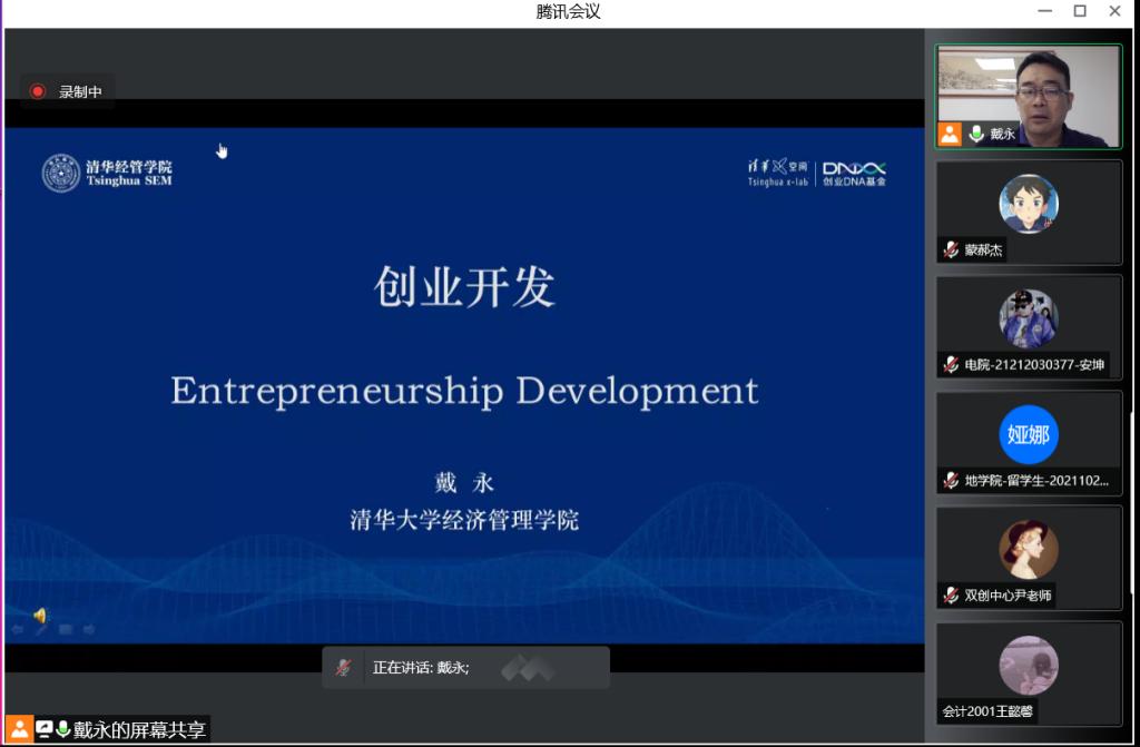 為做好疫情期間“停課不停學(xué),停課不停創(chuàng)”的線上教學(xué)工作,創(chuàng)新創(chuàng)業(yè)中心結(jié)合工作實際,開展創(chuàng)新創(chuàng)業(yè)線上教育。3月19日下午14點,由創(chuàng)新創(chuàng)業(yè)中心主辦的第九期《創(chuàng)新創(chuàng)業(yè)大講堂》通過騰訊會議順利舉行。本期授課主題是《創(chuàng)業(yè)開發(fā)》,特邀了清華大學(xué)二十國集團(G20)創(chuàng)業(yè)研究中心戴永老師主講。