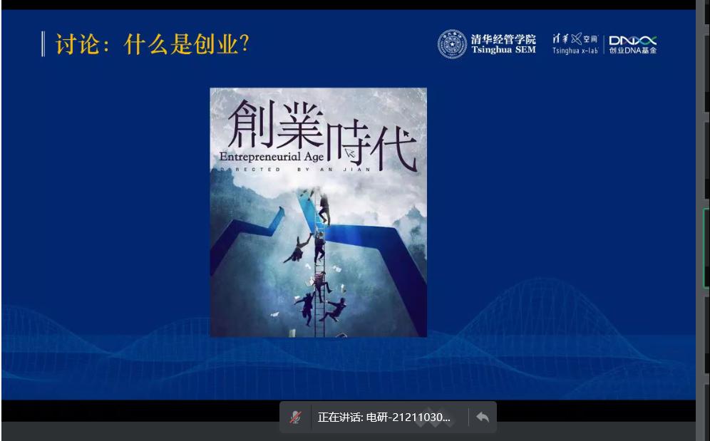 課上,戴老師以“什么是創(chuàng)業(yè)”為題啟發(fā)同學(xué)們的討論,電子工程學(xué)院研究生梁馳、材料科學(xué)與工程學(xué)院本科生劉乾等同學(xué)踴躍回答,隨后戴老師引出創(chuàng)業(yè)實質(zhì)不僅是《辭?!防锏拈_創(chuàng)基業(yè),更重要的是發(fā)現(xiàn)機遇、抓住機遇、把握商機。隨后,戴老師通過藝妙神州、光合未來等具體的創(chuàng)業(yè)案例生動形象地回答了“什么是創(chuàng)業(yè)”以及創(chuàng)業(yè)過程中必不可少的四要素,強調(diào)創(chuàng)業(yè)需要抓住創(chuàng)業(yè)機會、創(chuàng)業(yè)者和創(chuàng)業(yè)團隊三要素結(jié)合資源、機會和運營體系三維度來創(chuàng)造價值,實現(xiàn)創(chuàng)業(yè)。