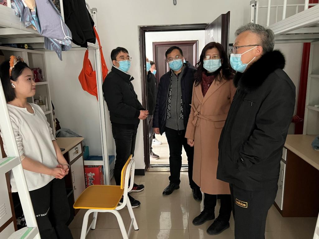 檢查組深入學生宿舍,細致了解學生宿舍的疫情防控、應急處置、消防安全、日常衛(wèi)生管理等工作,對宿舍衛(wèi)生、規(guī)范用電、個人防護等重點環(huán)節(jié)進行細致排查。檢查期間,司馬文龍書記、王文珍院長與學生進行了親切互動,了解了學生目前的生活、學習、思想狀態(tài),對同學們提出了幾點要求:一是要做好宿舍內務整理,保證宿舍安全干凈整潔;二是要按照學校要求做好晨午晚三次健康打卡,有異常情況第一時間上報;三是提醒同學們有困難及時與輔導員聯(lián)系交流,共同努力把疫情對生活和學業(yè)的影響降到最低。