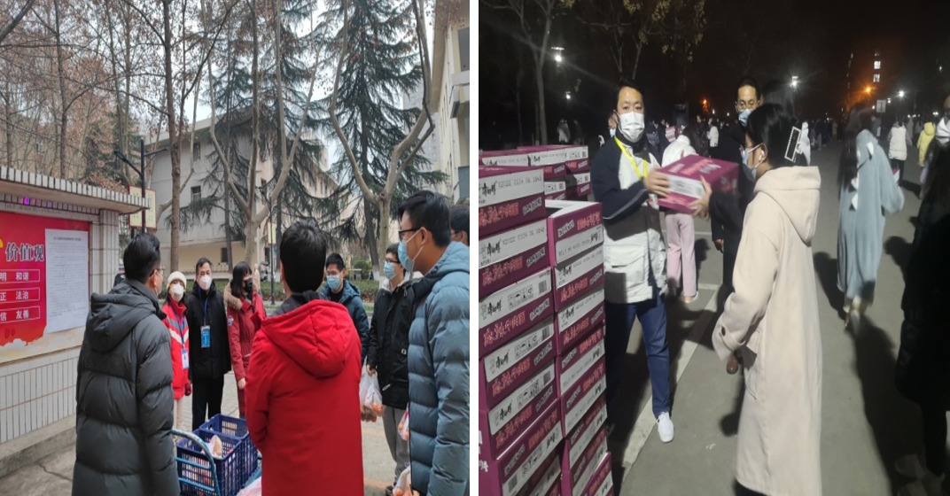 教師黨員在疫情面前更是顯示了戰(zhàn)斗堡壘的作用。院黨委為師生們購買了防護口罩、一次性手套等防疫物資,用特殊黨費為全體學生購買了水果,院領(lǐng)導、輔導員、導師代表一起為學生逐一發(fā)放,幾位研究生在和導師聊天中無意說到想吃肉,白燕老師悄悄做了炸雞翅送到學生手上。和萬霖老師對口服務(wù)學院一戶居家隔離的老師,他在寒風中排了3個小時的隊,為居家隔離的老師購買了充足的菜品,沒顧上給自己家買上一棵菜。雁塔校區(qū)的研究生經(jīng)常收到導師、輔導員愛心投喂。鄠邑校區(qū)長期堅守的老師們顧不上自己吃飯,組織大家有序檢測核酸、分發(fā)愛心捐贈和防疫物資。他們還組織本科生開展了宿舍清潔小技能比賽。郭文閣教授為全院研究生做題為“如何撰寫學位論文”的線上學術(shù)報告。雁塔校區(qū)研究生輔導員人手緊缺,馮德全老師、張旋老師二話不說,第一批參加了研工部安排的教師值班;發(fā)放物資運輸工具短缺,丁繼軍老師直接把自己家的私家車作為運輸工具為大家運輸物資,家里有孩子有老人的多位老師安排好老人孩子,上完網(wǎng)課就直接投入志愿服務(wù)當中……。據(jù)不完全統(tǒng)計,僅雁塔校區(qū)就有32位在校黨員教師主動請纓,參加了核酸檢測、物資發(fā)放、藥品購買、宿舍值班等志愿服務(wù)。在校的所有教工支部書記帶頭參加了多項志愿服務(wù)。