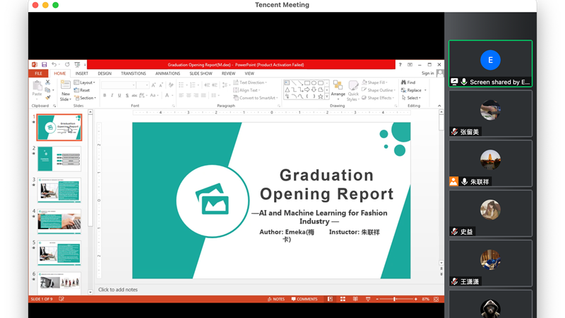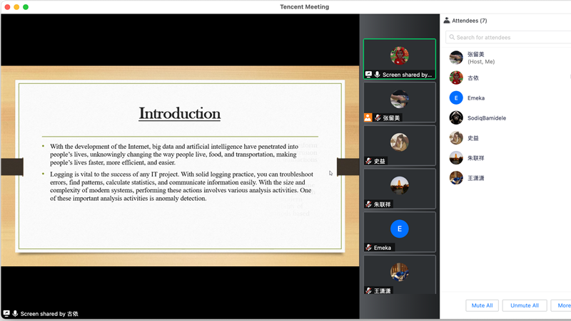 答辯會(huì)上,艾聞東、索迪克、梅卡、古依等4名留學(xué)生從論文整體框架以及選題意義、文獻(xiàn)綜述、理論框架、研究方法、創(chuàng)新與特色等方面做了詳細(xì)闡述。4名留學(xué)生生的論文選題包括深色皮膚的面部識(shí)別:以非洲人為例、人工智能中的性別偏見(jiàn)和歧視研究、人工智能和機(jī)器學(xué)習(xí)在時(shí)裝業(yè)中的應(yīng)用、自動(dòng)安全日志分析中的異常檢測(cè)等。