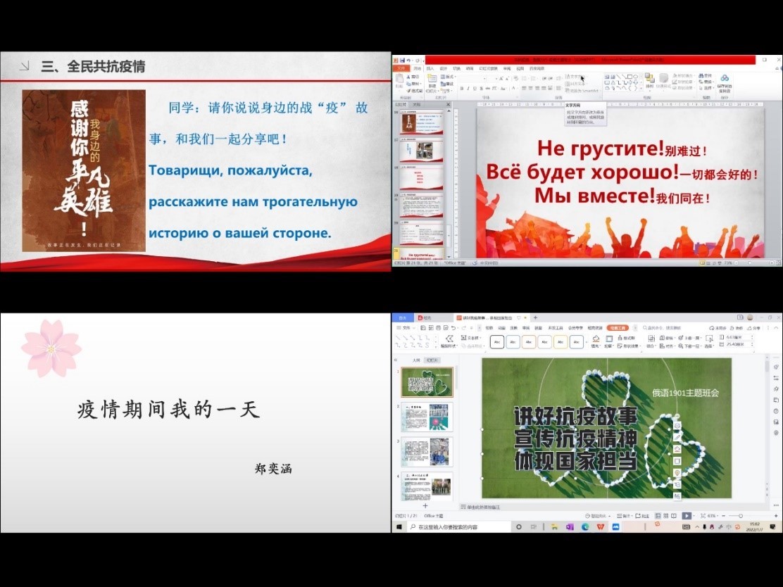 2022年1月,學(xué)院以班級(jí)為單位組織召開(kāi)“同舟共濟(jì),抗擊疫情”云端雙語(yǔ)線上主題班團(tuán)會(huì),弘揚(yáng)偉大抗疫精神,講好抗疫故事。帶領(lǐng)全體學(xué)生學(xué)習(xí)了《西安石油大學(xué)疫情防控文明公約》,引導(dǎo)學(xué)生在疫情面前提高站位,正確看待網(wǎng)絡(luò)信息,不信謠不傳謠!弘揚(yáng)正能量,學(xué)會(huì)感恩,攜手并肩,抗擊疫情。