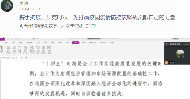 會(huì)計(jì)系教師吳勛在《中級(jí)財(cái)務(wù)會(huì)計(jì)》課程在線學(xué)習(xí)網(wǎng)站首頁(yè)發(fā)布“攜手抗疫、共克時(shí)艱”信息,在課程導(dǎo)論中引入會(huì)計(jì)改革與發(fā)展“十四五”規(guī)劃綱要,引導(dǎo)學(xué)生找準(zhǔn)會(huì)計(jì)準(zhǔn)則國(guó)際趨同和解決我國(guó)實(shí)際問(wèn)題之間的平衡點(diǎn)和結(jié)合點(diǎn),更好促進(jìn)我國(guó)企業(yè)創(chuàng)新和經(jīng)濟(jì)高質(zhì)量發(fā)展。