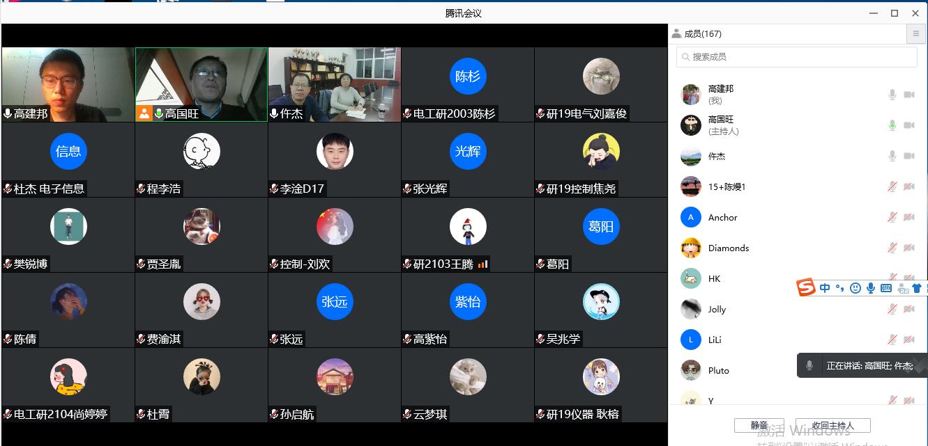 目前,西安市疫情防控進(jìn)入“殲滅戰(zhàn)”階段,我校在師生同心努力下取得了疫情防控的階段性成果。隨著封控時(shí)間的延長(zhǎng),有些學(xué)生思想上松懈,放松了要求,尤其隨著春節(jié)的臨近,學(xué)生的情緒波動(dòng)大。在這疫情防控的關(guān)鍵點(diǎn),電子工程學(xué)院于2022年1月13日晚上19:00在騰訊會(huì)議平臺(tái)召開全體研究生黨員組織生活會(huì),動(dòng)員全體黨員打好最后的“殲滅戰(zhàn)”,保衛(wèi)學(xué)校平安。學(xué)院院長(zhǎng)仵杰、副院長(zhǎng)高國(guó)旺、學(xué)院黨委副書記畢軼慧、研究生輔導(dǎo)員高建邦以及164名黨員和預(yù)備黨員參加了會(huì)議。會(huì)議由高建邦老師主持。