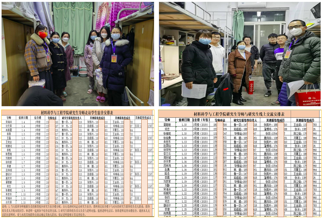 為保證研究生在疫情防控期間更好的成長成才,切實(shí)發(fā)揮研究生導(dǎo)師職責(zé),學(xué)院黨委精心謀劃、積極部署。一是安排10名教師黨員先鋒隊(duì)(研究生導(dǎo)師)在12月31日這一重要時(shí)間節(jié)點(diǎn)組成3組進(jìn)入研究生宿舍,逐一對(duì)研究生進(jìn)行慰問,送新年祝福發(fā)防疫口罩。二是組織在南院居住的19名研究生導(dǎo)師從1月3日開始,每天分三組深入學(xué)生宿舍進(jìn)行走訪交流,關(guān)心學(xué)生生活、學(xué)習(xí)動(dòng)態(tài),了解學(xué)生的實(shí)際困難,鼓勵(lì)大家積極面對(duì)疫情,樹立信心。三是結(jié)合學(xué)校封控管理政策,組織全院校內(nèi)外研究生導(dǎo)師從1月9日開始,每次分四組對(duì)雁塔校區(qū)全體研究生開啟“云溝通、云指導(dǎo)”模式,導(dǎo)師通過騰訊會(huì)議等在線軟件用先進(jìn)典型事例向研究生弘揚(yáng)抗疫精神,引導(dǎo)研究生正確面對(duì)疫情,教育研究生增強(qiáng)自我防護(hù)能力和防護(hù)意識(shí),遵守疫情防控相關(guān)規(guī)定,積極對(duì)研究生開展心理疏導(dǎo)、學(xué)業(yè)指導(dǎo)和人文關(guān)懷等工作。