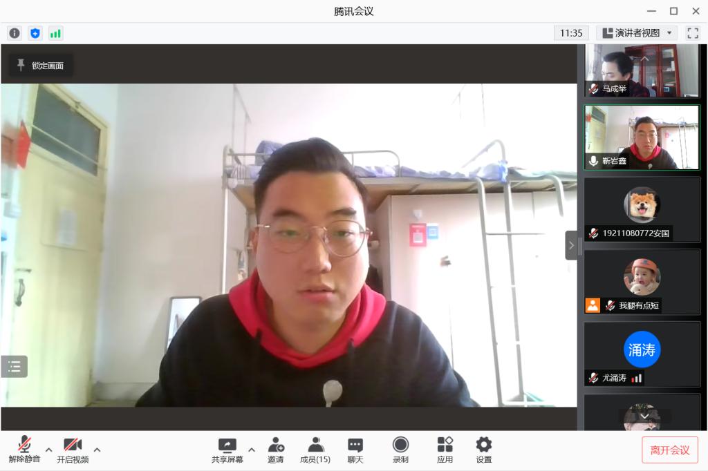 主題黨日活動的第二階段是交流發(fā)言環(huán)節(jié),三個黨支部分別組織召開支部會議。下午15時,研究生第一黨支部在線召開會議,研究生導(dǎo)師馬成舉列席會議并發(fā)言。會上,同學(xué)們逐一發(fā)言表態(tài),就當(dāng)前疫情形勢下各自如何發(fā)揮作用暢談初心、共商良策。馬成舉老師從研究生“初心是什么”、“使命有哪些”、“當(dāng)前形勢下應(yīng)該怎么做”三個方面深刻講述了一名研究生黨員如何在學(xué)校需要的時候勇挑重?fù)?dān)、如何在社會危難時刻踐行初心使命,他教育廣大黨員要提高認(rèn)識,牢記使命,勇?lián)?zé)任,奮發(fā)作為,為疫情防控做出一名學(xué)生黨員能做的、應(yīng)做的積極貢獻(xiàn)。