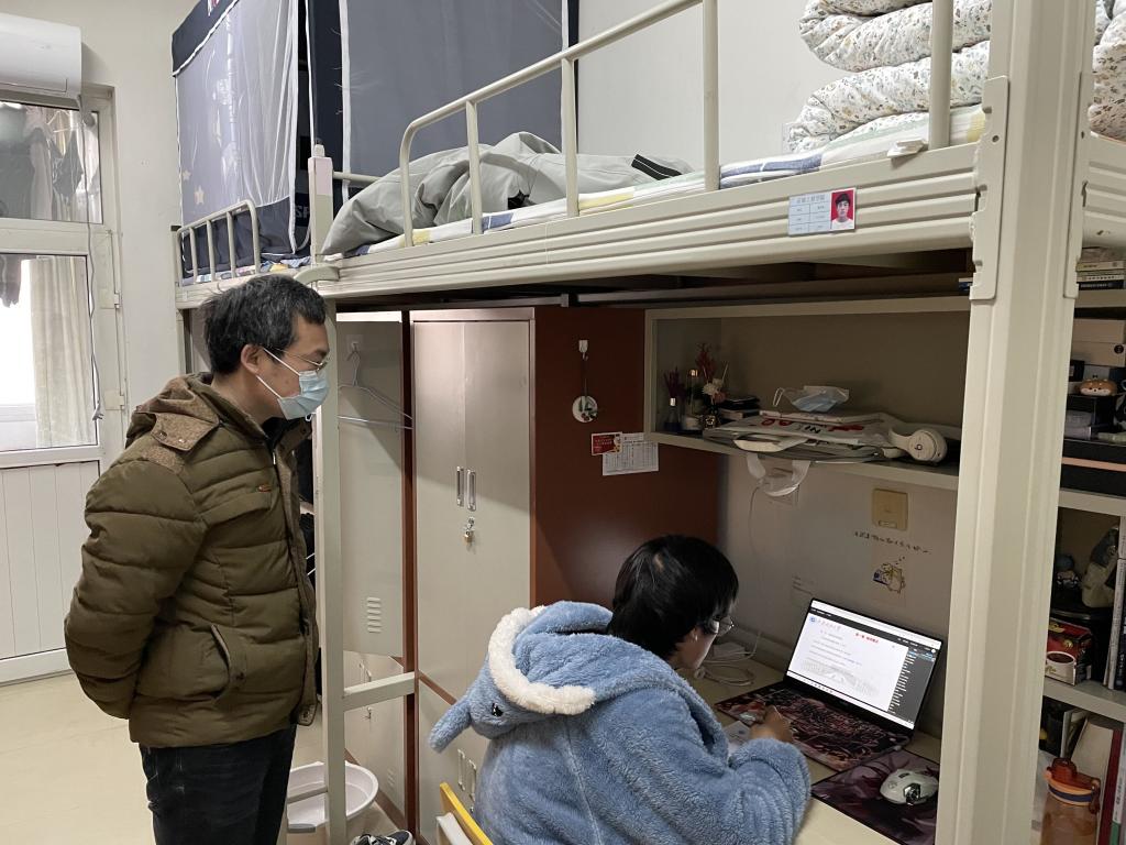 為做好疫情防控期間教學工作,2022年1月3日上午,石油工程學院黨委書記馬勇、院長周德勝深入線上課堂聽取開學第一課,黨委副書記張建高、教學副院長趙金省深入鄠邑校區(qū)學生宿舍,線上線下查看教師授課、學生“出勤”、網(wǎng)絡狀況運行情況。