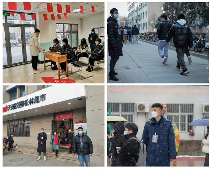 在宿舍樓內,志愿者們認真核對每一位同學的出入證、洗澡預約憑證,發(fā)放洗浴票,耐心解答同學們的問題和困惑;在食堂和超市門口,志愿者們認真執(zhí)勤,時刻注意提醒就餐、購物人員佩戴好口罩、保持好距離,用心維持秩序,落實就餐、購物要求;在核酸檢測過程中,志愿者們在公寓樓將同學們逐層帶出整隊,做完核酸檢測后全員帶回,秩序井然。3名退伍士兵志愿者積極參與核酸檢測現(xiàn)場秩序維護和引導工作,堅持傳承軍隊優(yōu)良作風,保持“退伍不褪色”的軍人本色,在新的“戰(zhàn)場”上彰顯人生價值。