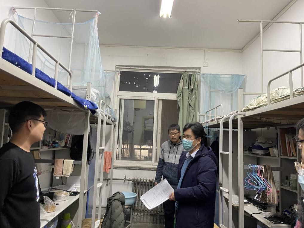 學(xué)院黨委書記宋海洋帶領(lǐng)學(xué)院黨員先鋒隊老師們分三組到雁塔校區(qū)12、3號樓看望研究生并發(fā)放防疫口罩。